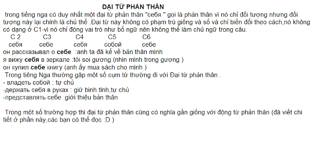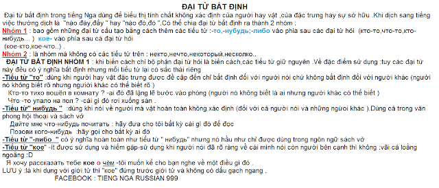 ĐẠI TỪ TIẾNG NGA ĐẠI TỪ NHÂN XƯNG ĐẠI TỪ PHẢN THÂN ĐẠI TỪ SỞ HỮU ĐẠI TỪ CHỈ ĐỊNH ĐẠI TỪ XÁC ĐỊNH ĐẠI TỪ NGI VẤN ĐẠI TỪ BẤT ĐỊNH ĐẠI TỪ PHỦ ĐỊNH Tags: đại từ, đại từ bất định, đại từ nhân xưng, đại từ quan hệ, đại từ sở hữu Chia sẻ bài viết này Vui lòng để lại đánh giá cho bài viết: 0 1 Bài trướcЭЛЕМЕНТАРНЫЙ УРОВЕНЬ -A1Bài tiếp theoMỨC 2 ĐÓ Có thể bạn quan tâm Bài 50 – Bài giảng tiếng Nga 16 Tháng Hai 2013 Bài 9 – Bài giảng tiếng Nga 05 Tháng Ba 2011 Bài 4 – Bài giảng tiếng Nga 03 Tháng Một 2011 BÀI 2: ĐẠI TỪ NHÂN XƯNG (личное местоимение) 19 Tháng Bảy 2015 BÀI 3: ĐẠI TỪ SỞ HỮU (притяжательное местоимение) 19 Tháng Bảy 2015 Bài 6 – Bài giảng tiếng Nga 15 Tháng Một 2011 Leave a Reply Cancel ReplyBạn cần đăng nhập để gửi phản hồi